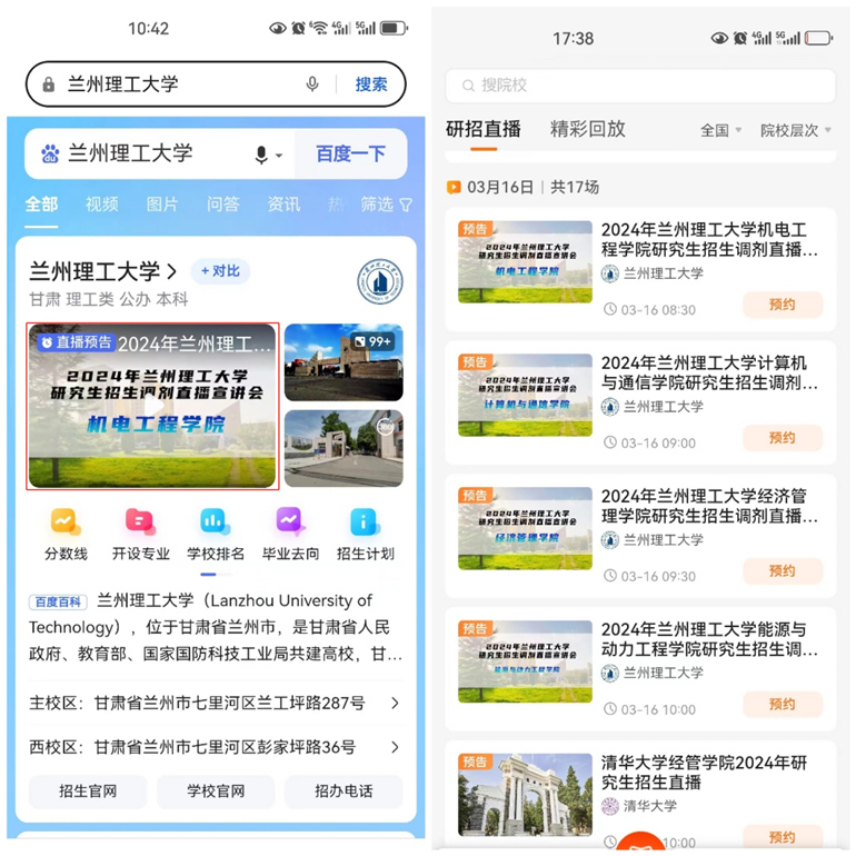 三、百度搜索兰州理工大学,点击直播卡片直接观看回放。
