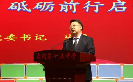 学校主要领导发表了热情洋溢的致辞,他代表武威第十五中学领导班子向莅临指导的各位领导、专家表示热烈的欢迎!向努力耕耘的教职员工致以崇高的敬意!向奋力追梦的全体学子表示诚挚的问候!向精心守护孩子成长的所有家长说句辛苦!向关心和支持学校发展的社会各界道声谢谢!旧岁已展千重锦,新年再进百尺竿。他回顾总结了学校近些年取得的各项成绩,并表示2024年的十五中,将会坚定不移落实立德树人根本任务,一以贯之秉持“让每个学生都有出彩人生”的办学理念,不断巩固成绩、弥补不足,以人文特色高中创建为抓手、团结带领广大师生奋力前行、开拓进取,用更辉煌的成绩向武威人民上交更好的答卷。