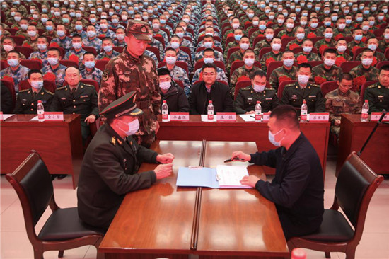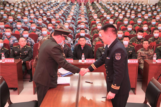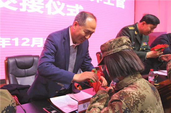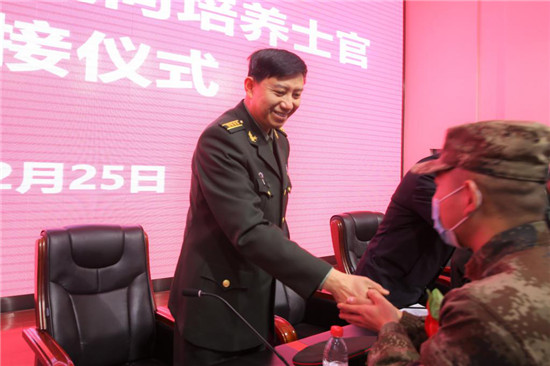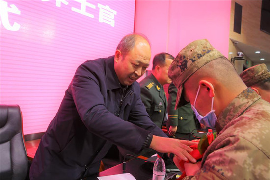 会上,与会领导为士官生代表佩戴了光荣花,签定了交接责任书,接兵干部、入伍士官生代表分别作了发言。