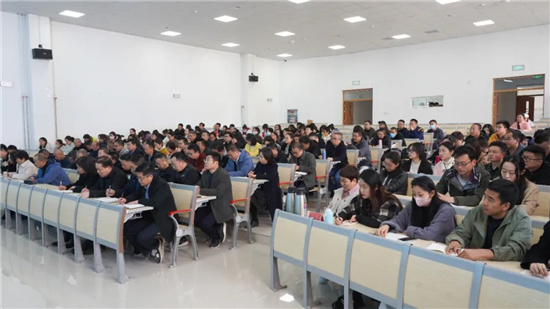 3月21日下午,甘肃交通职业技术学院召开2024师德师风建设年启动动员大会。党委书记闫林君作动员讲话,党委副书记、院长郭明维主持会议,领导班子成员、全体中层干部、辅导员、副教授及以上职称教师代表参加会议。