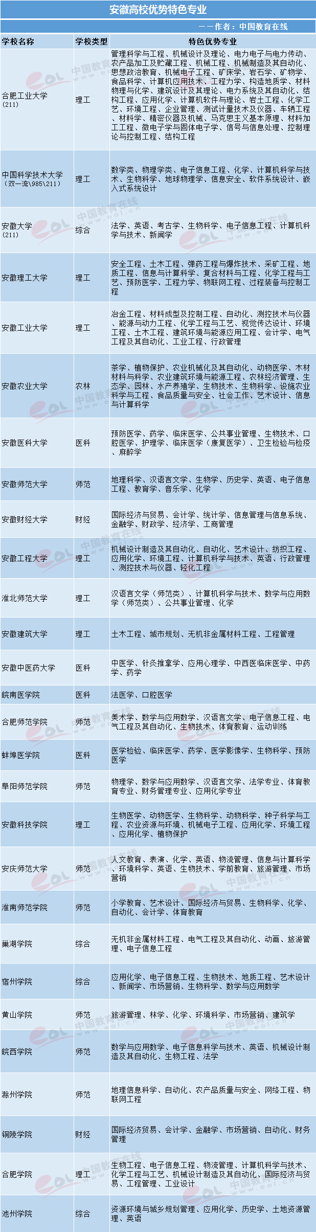 安徽高校特色优势专业名单 2018高考志愿填报参考