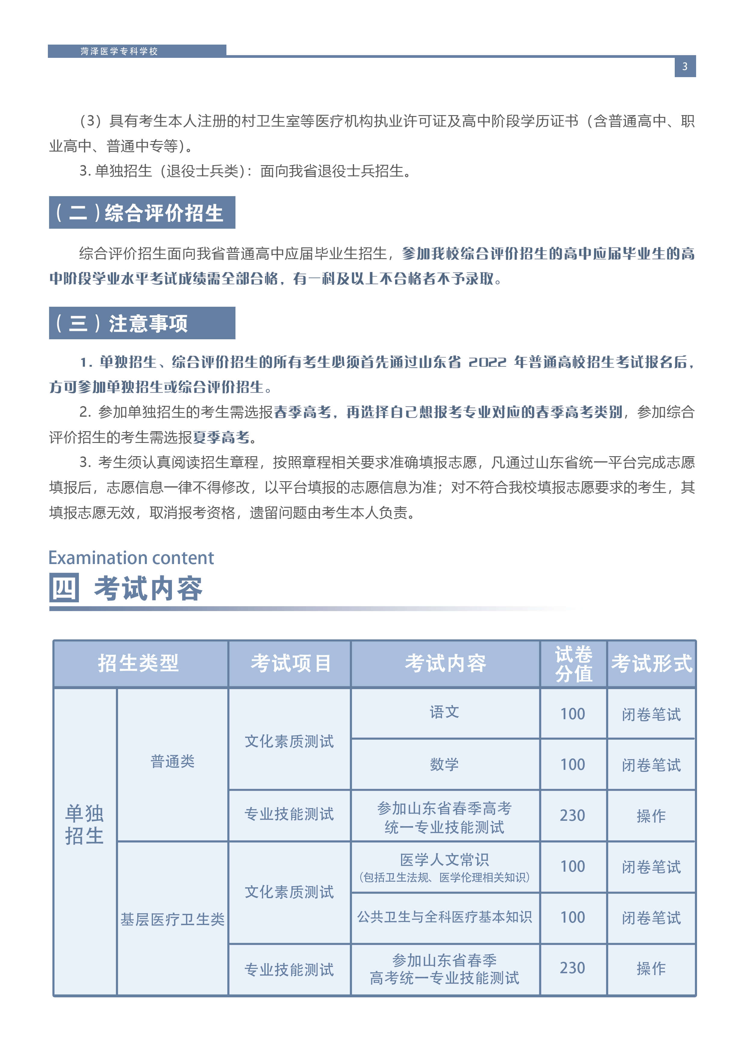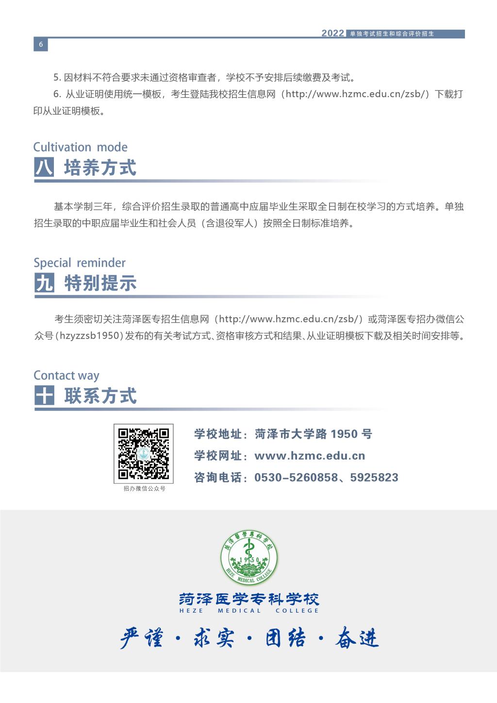 掌上高考整理了菏泽医学专科学校2022年单独招生简章