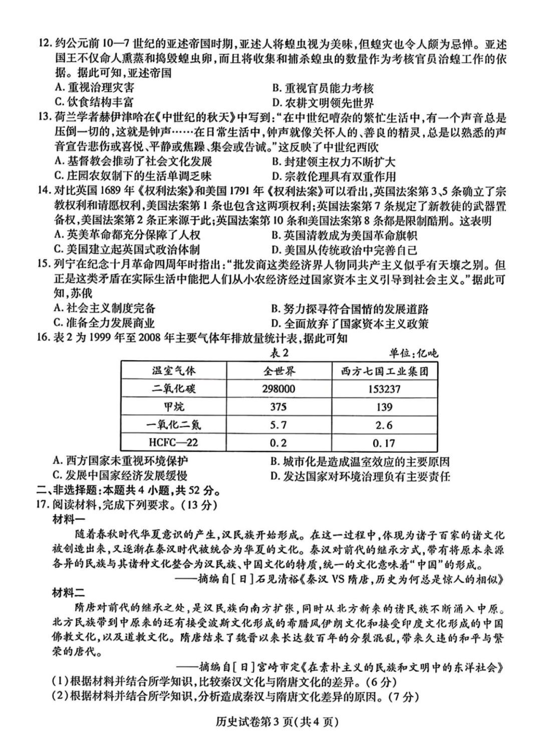 2024年高考进入倒计时,全国各省市高三进行三模考试。掌上高考将哈师大附中2024年高三第三次模考历史试题整理出来,希望对高三的同学们有帮助。