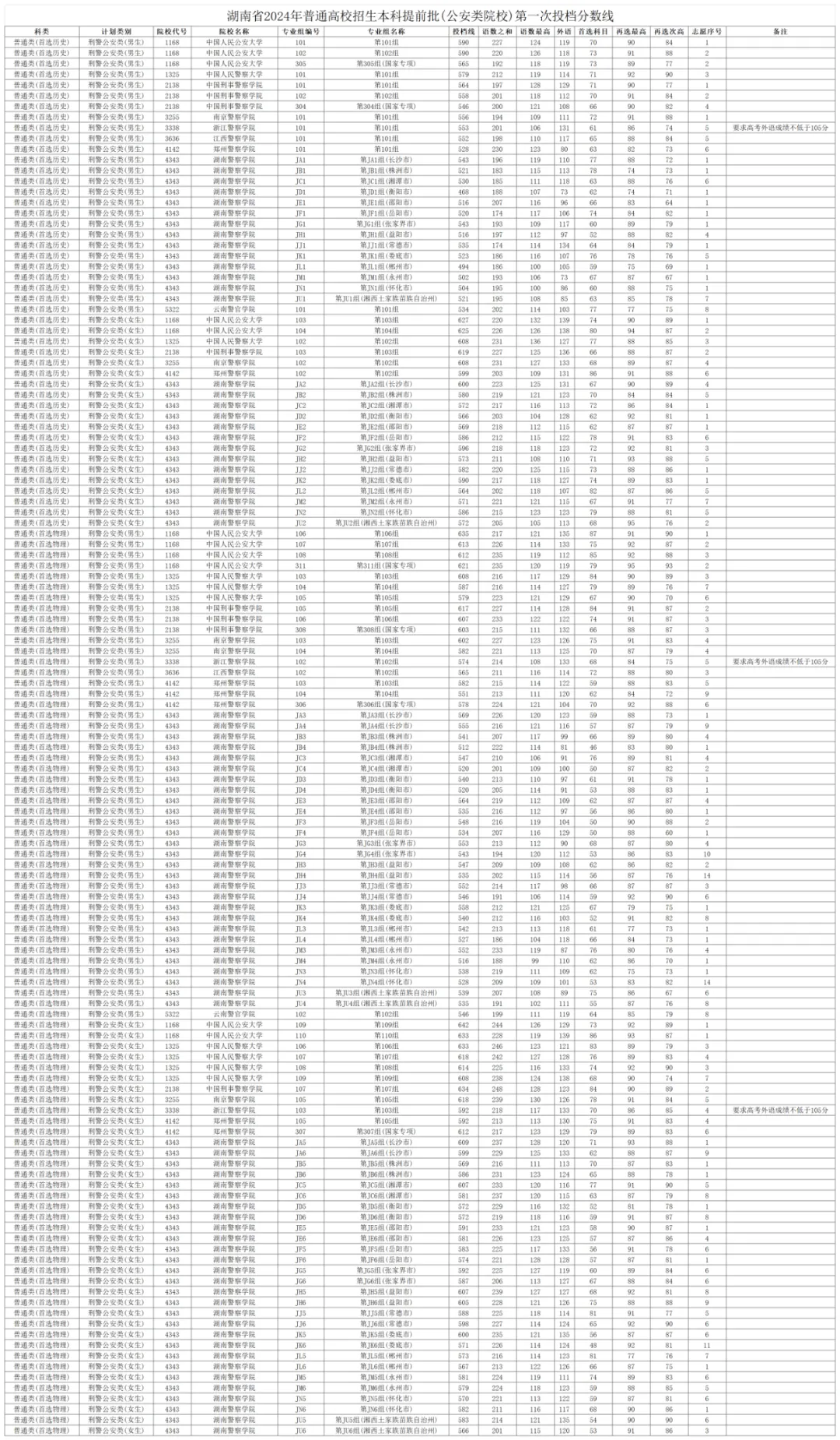 湖南2024年高考本科提前批(公安类院校)投档线公布