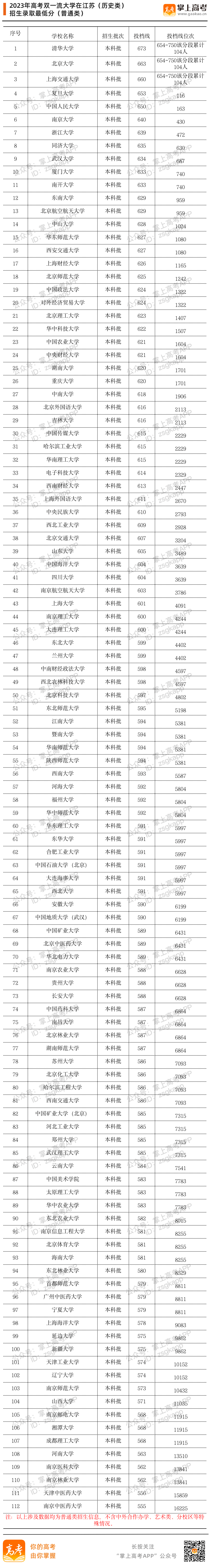 2023年双一流大学在江苏投档分数线汇总