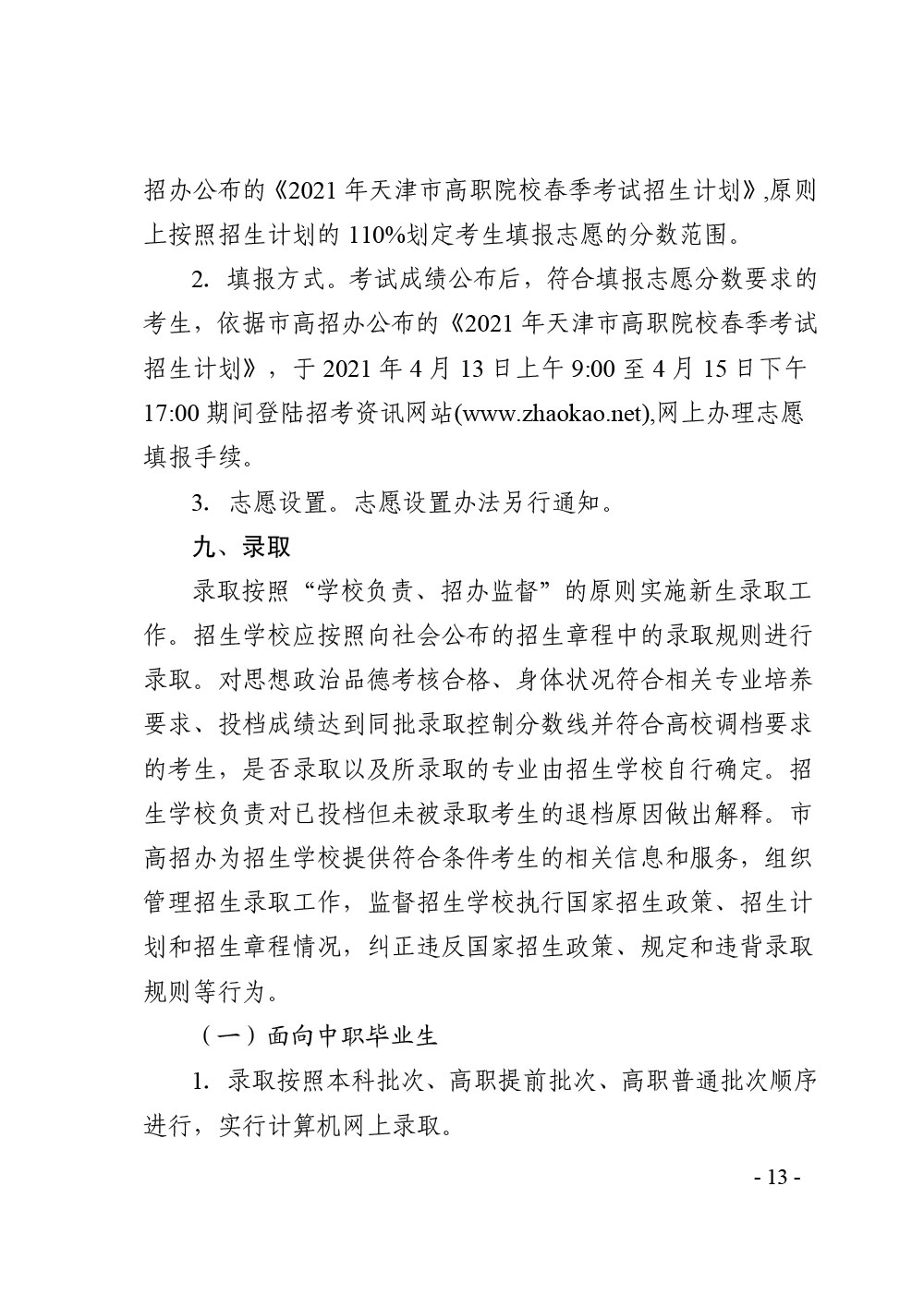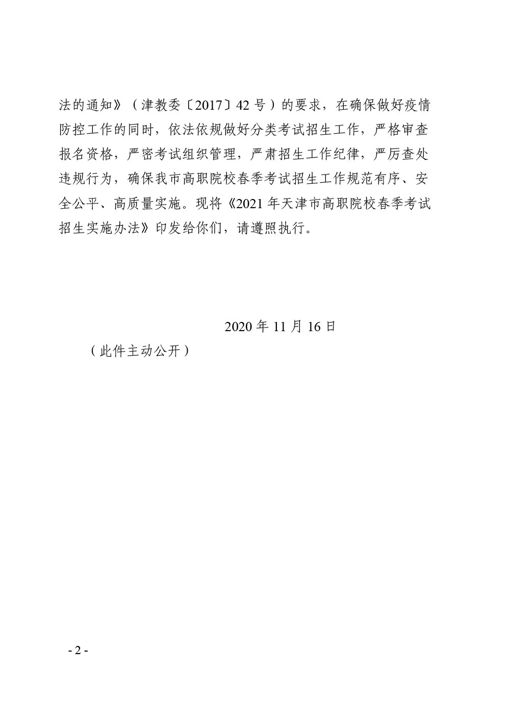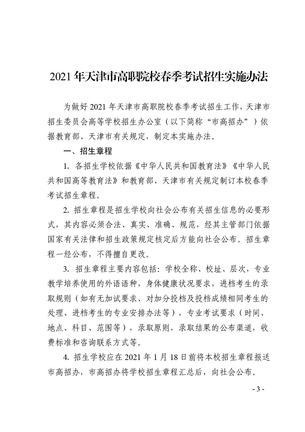 天津:市高招办关于印发2021年高职院校春季考试招生实施办法的通知