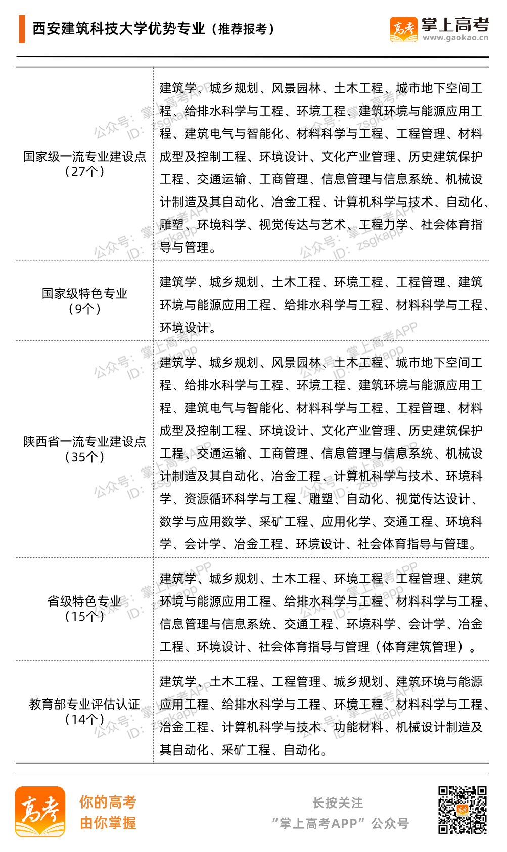 除了学科评估结果之外,掌上高考也为各位考生汇总了西安建筑科技大学的优势专业,覆盖国家级、省级一流专业,国家级、省级特色专业及通过金博宝最新官方网站查询网址 专业评估认证的专业,推荐考生报考。