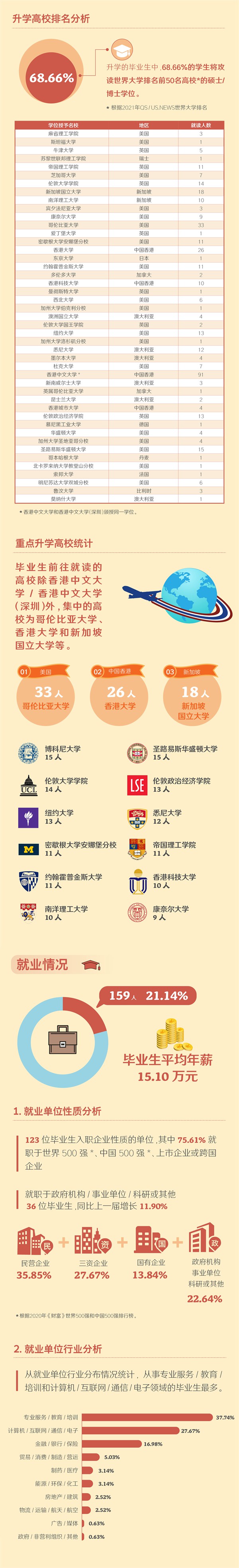 名校入读比例领跑国内高校,近七成升学毕业生攻读世界前50名大学硕/博学位
