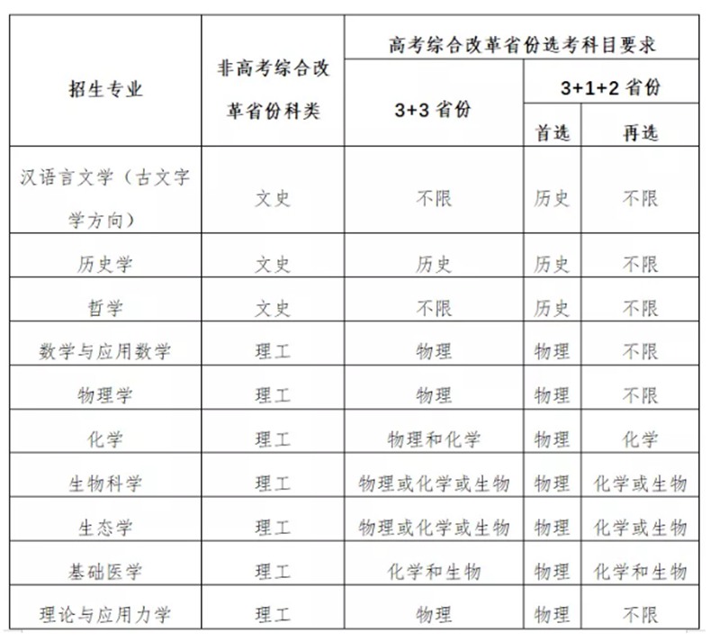 注:1.化学、生物科学、生态学和基础医学专业不招收色盲色弱学生。