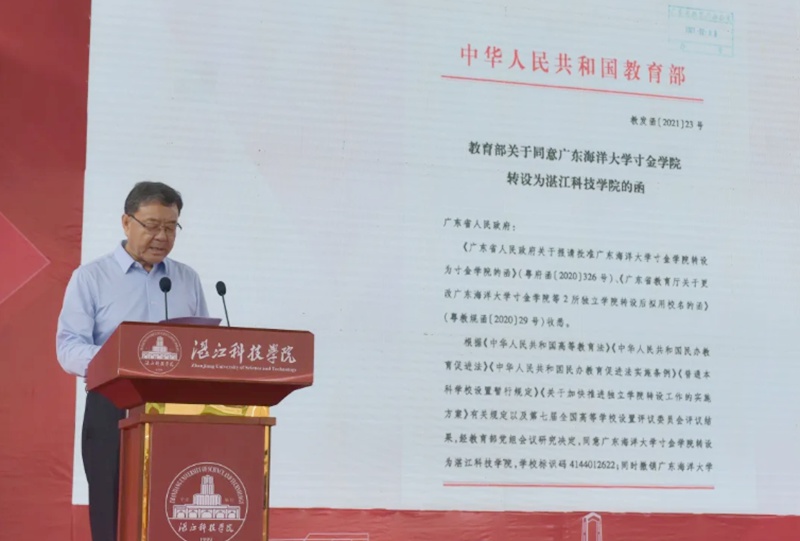 广东省教育厅发展规划处谢春艳处长讲话,代表广东省教育厅对我校成功转设并更名为湛江科技学院表示热烈的祝贺!谢处长指出,21年来,我校扎根湛江大地办大学,紧贴地方经济社会需求培养了5万名应用型技术技能型人才,取得了显著的办学成绩。学校的成功转设对于提升湛江高等教学发展水平、优化广东省188金宝搏beat官网登录 区域布局将起到积极的促进作用。希望学校加强党的领导,全面贯彻党的教育方针,落实立德树人根本任务;科学谋划学校办学定位,精准制定学校发展战略;切实加强师资队伍建设,努力完善教育教学基础设施;大力改善办学基本条件,提高人才培养质量。希望学校为湛江建成省域副中心城市、打造现代化沿海经济带重要发展级作出新贡献!