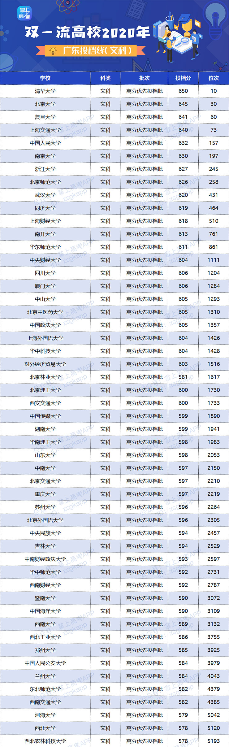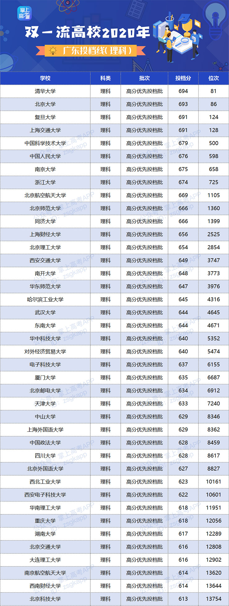 2022年高考在即,为方便全国各地考生择校及备考,为帮助新高一、高二、高三考生确定奋斗目标,掌上高考APP独家整理最近3年双一流大学在广东的普通类投档最低分数线及位次排名汇总,供广大考生、家长及老师参考。