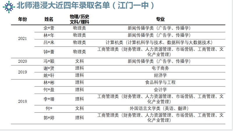 UIC还细心地对近4年江门一中录取的同学进行了汇总。