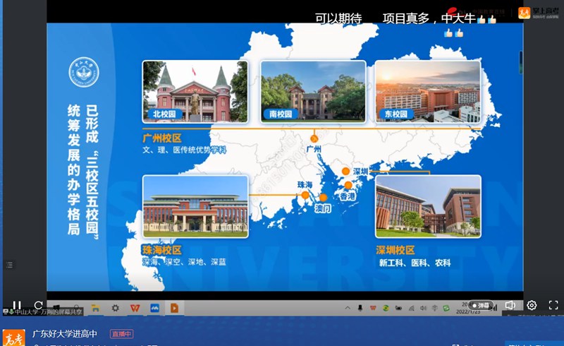 好多美食!可以保研吗?666,这所大学爱了……1月23日晚7:30,金宝搏188入口 2022年主办“广东好大学进高中”第四站活动在直播间成功举行。此次金宝搏188入口 邀请了中山大学、华南理工大学、北京师范大学-香港浸会大学联合国际学院(UIC)、汕头大学等4所高校为江门市第一中学高三学生家长在直播间在线讲解交流。当天晚上,江门一中高三学生家长以及闻讯而来的其他学校学生家长3000多人次参加了直播讲座。学生、家长在直播间和老师在线互动,纷纷提问,挤爆直播间。