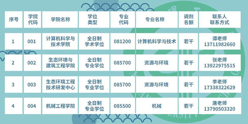 (注:各专业调剂名额请以“全国硕士生招生调剂服务系统”具体发布为准)