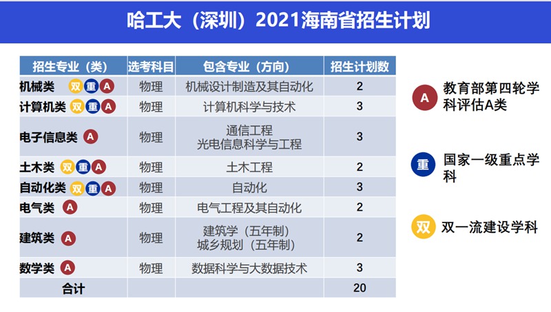 哈工大(深圳)采用精华学科“小大类”开展招生,直接锁定一流重点学科对应专业方向,既为高分考生消除了二次分流的忧虑,也为志向明确的考生减轻了“无关课程”的负担。简单来说,目前除了电子信息类、建筑学类,其他专业(类)均只对应1个优选专业方向,没有分流。 在海南招生的8个招生专业(类)中, 除了集合最强工科专业群(双一流占50%, A类学科占100%),可以说是精选了哈工大“最具价值”、最具前景和“钱”景的专业,优秀配置让考生不怕调剂。