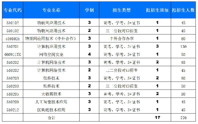 计算机网络技术是首批国家示范性高职院校重点建设专业、广东省首批高职高专教育示范性专业、市级高职高专教育示范专业;软件技术为广东省高等职业教育重点专业、市级高职高专教育示范专业;物联网应用技术是中央财政支持提升专业服务产业发展能力专业、广东省二类品牌建设专业、市属高职院校示范专业;计算机应用技术是广州市第一批高等职业教育重点专业;大数据技术是广东省高水平专业群龙头专业;区块链技术应用和人工智能技术应用是面向数字经济与人工智能战略性新兴产业的新专业。