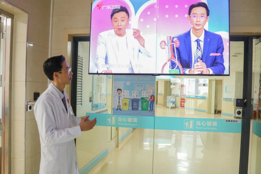我定期参与广东卫视、广州健康电视节目的科普节目。我们会把这些科普视频放到科室的电视里,每天为患者播放。