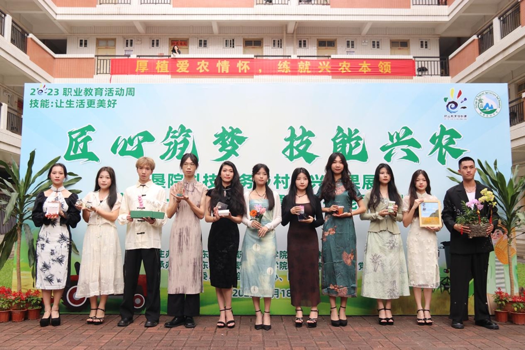 藤茶酸奶、藤茶口服液、藤茶饼干、梨不开小贝、新娘花环、植物微景观造景、二十四节气压花画……5月18日,垦院科技服务乡村振兴成果展暨第十一届“农”情蜜意专业技能展示大赛在广东农工商职业技术学院热带农林学院农情驿站学生社区开幕。近200名涉农专业学生展示了20个风格迥异各具特色的农业作品,现场吸引了上千名师生互动参与,20多家农业企业前来洽谈校企合作。