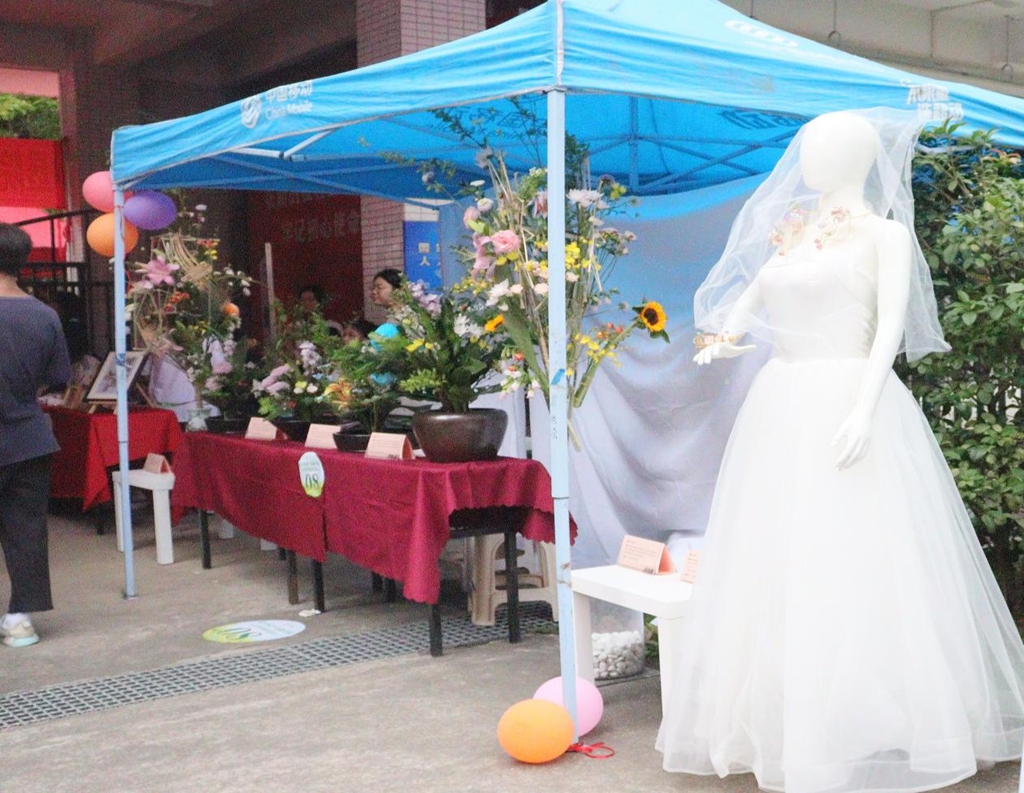 在热闹的活动现场,数盆错落有致的中式盘花和缸花傲然挺立,旁边新娘模特身上的花饰也同样亮眼,共同诠释了中西花艺之美。21园艺技术专业的陈雅思说:“这几件作品是按照国家和省级花艺大赛的标准来制作的,都是非常贴合花艺行业市场需求的。”