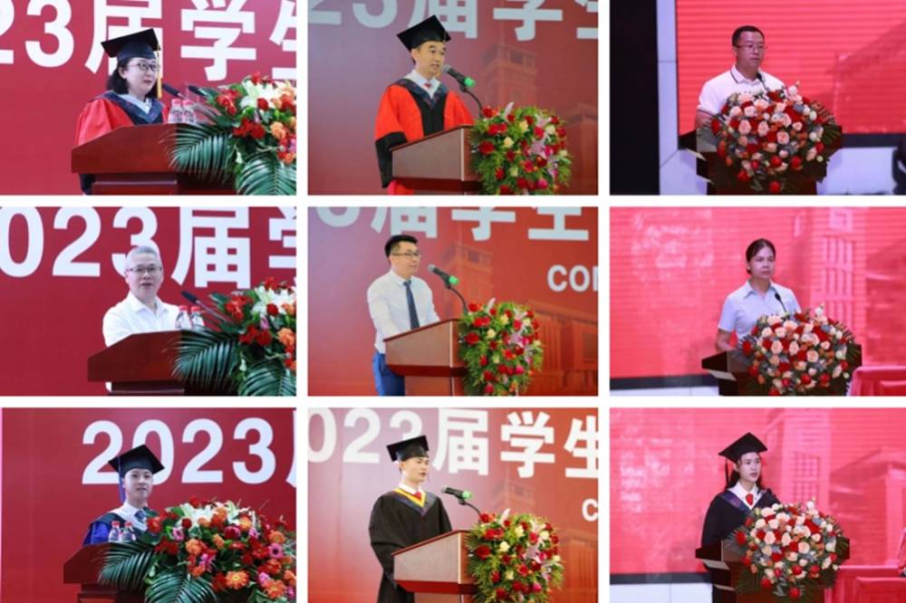 2023届优秀研究生毕业生许津、优秀本科毕业生吴华生和倪育君代表毕业生发表了毕业感言。他们深情回顾了自己在广药大求学、生活过程中的点点滴滴和温暖记忆,表达了对母校的不舍和对师长的感恩之情。他们纷纷表示,感恩师长的悉心栽培和不倦教诲,感谢同学们的温暖陪伴,感谢广药大校园文化的引领和浸润,让自己实现了华丽的蜕变,收获了终生难忘的记忆。踏上人生新的征程,他们将牢记习近平总书记的殷殷嘱托,牢记新时代青年的使命担当,带着母校的深深祝福和殷切期盼,坚守初心梦想,立志成才报国,强化使命担当,争做堪当民族复兴大任的时代新人,在全面建设社会主义现代化国家的火热实践中踔厉奋发、勇毅前行,用青春书写“强国有我”的华彩篇章,为母校带来新的荣光!