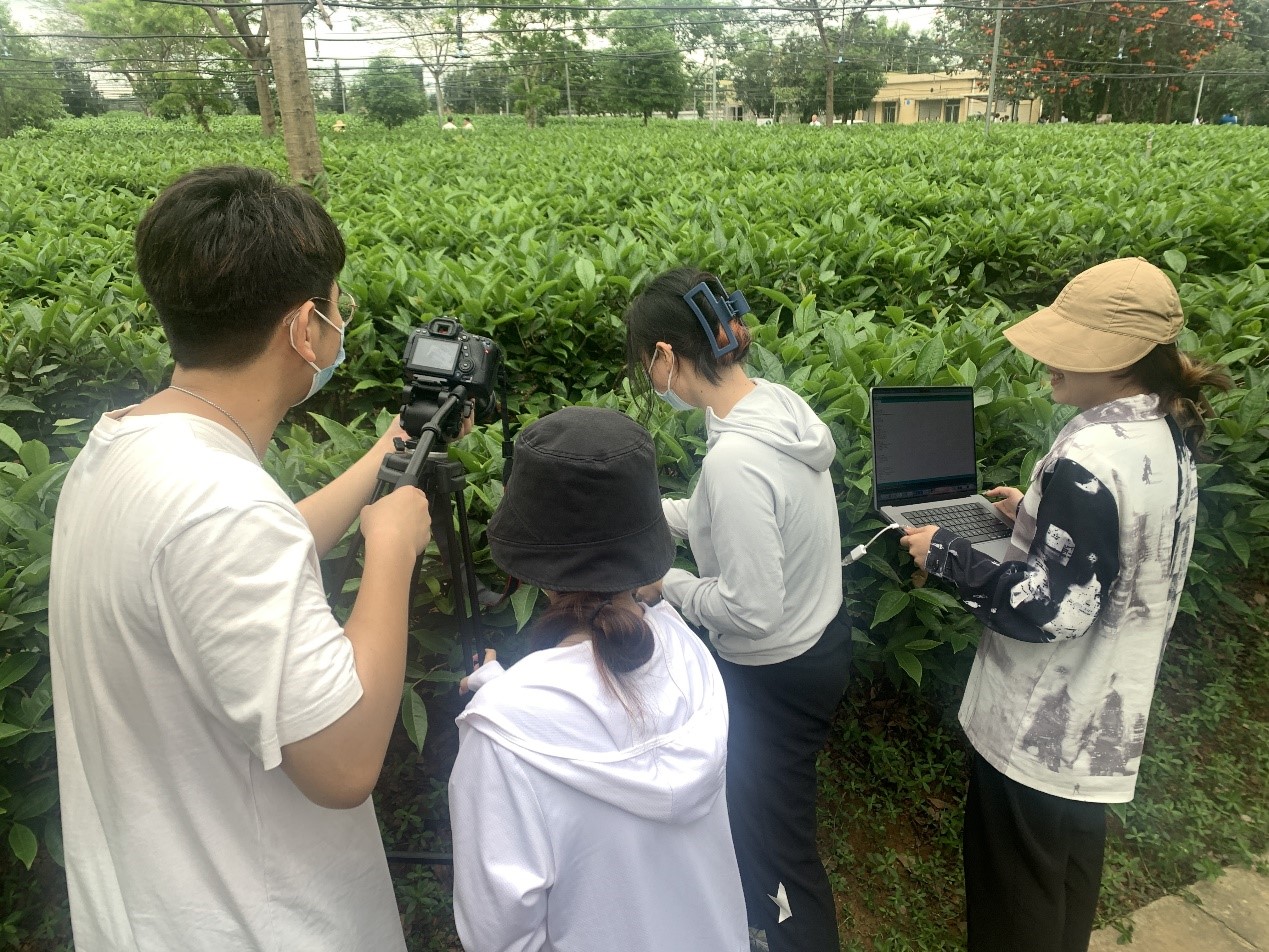 为了弥补相关知识缺乏的不足,团队成员从学习理论出发,询问茶行业工作者和查阅“植物生命调控技术”相关论文资料,探访广东省农业科学院茶叶研究所,深入茶园实地考察,走近茶树的真实生长环境,并针对病虫害防治与现场工作人员进行交流,一步一个脚印地进行创作前的调研工作。“我们发现害虫的种类、行为轨迹、取食方向非常有意思,于是我们把观察到的这些害虫的习性,当做一个视觉部分来进行设计,最终呈现在作品当中。”