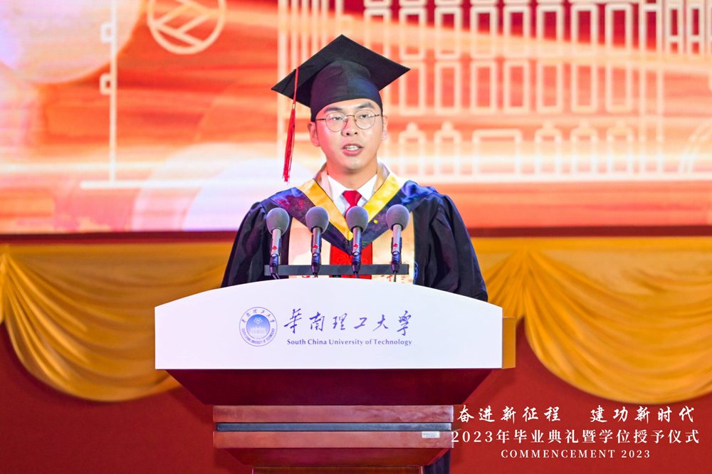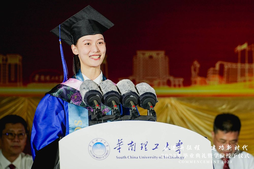 以“青春,在强国征程上绽放,在人类进步中闪光”为题,华南理工大学校长张立群在毕业典礼上致辞,为10947名毕业生送上“高扬理想风帆,凌云纵横绘蓝图”“勇立时代潮头,直挂云帆济沧海”“接续砥砺奋斗,宝剑锋从磨砺出”的寄语。