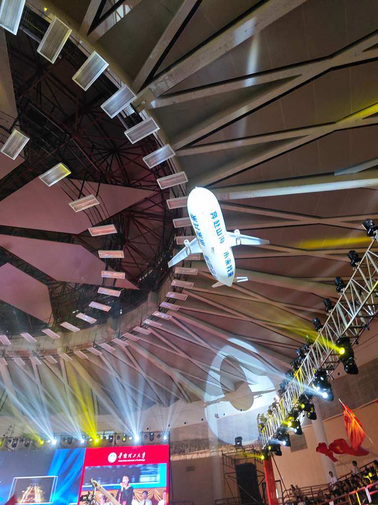 “奔赴山海、未来我来”的飞艇出现在五山校区会场上空