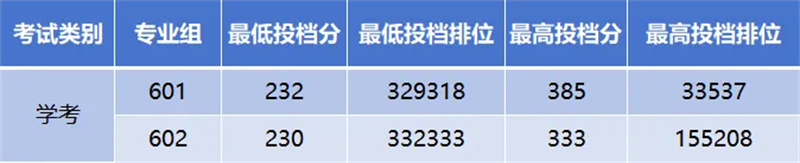从投档情况来看,我校今年春季高考各专业组一次投档满档,各专业组投档分数再创新高。其中3+证书投档最低分141分,投档最低排位148431,最低投档分超省控线26分;学考普通类投档最低分232分,投档最低排位329318,最低投档分超省控线47分。