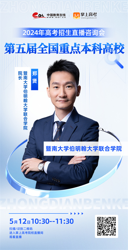 ·掌上高考于5月12日举办的“第五届全国重点本科高校2024年高考招生直播咨询会”活动,郑贤老师将与大家相约云端,畅谈学科发展,解读专业布局。