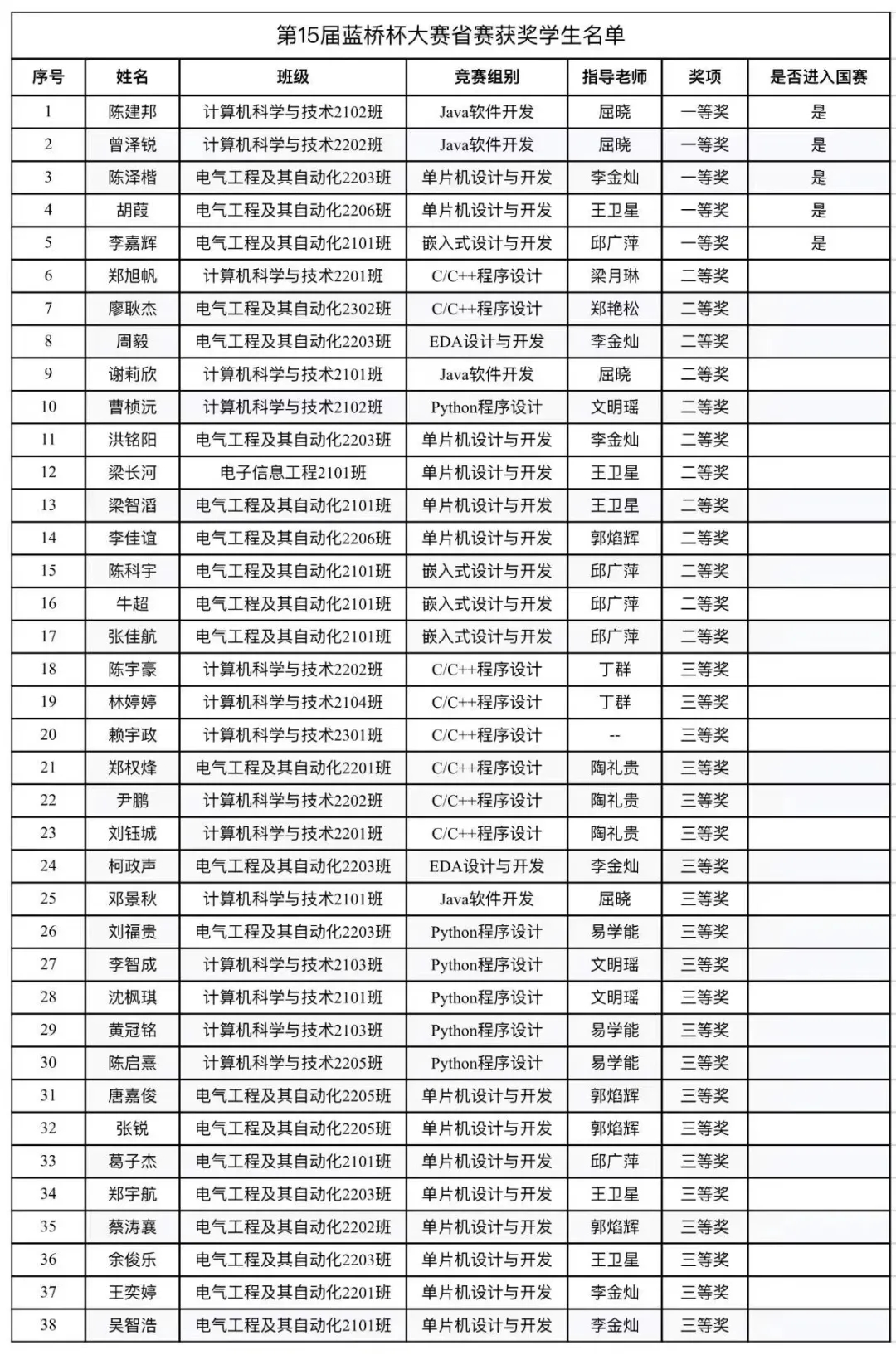 近日,由工业和信息化部人才交流中心主办的第十五届蓝桥杯全国软件和信息技术专业人才大赛个人赛省赛圆满收官,华南农业大学珠江学院信息工程学院在此次大赛中取得突破性成绩。据悉,本次大赛是华珠信息工程学院参赛人数以及获得奖项最多的一次赛事,学院共组织60名学生参赛,其中38人荣获奖项,包括一等奖5人,二等奖12人,三等奖21人,获得一等奖的5名同学将角逐国赛。
