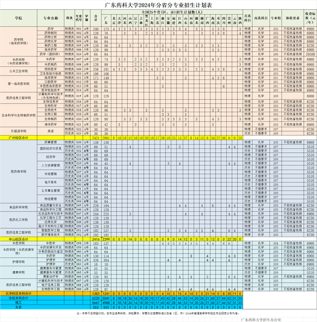 6480人!广东药科大学2024年普通本科招生计划发布!(招生代码 10573)