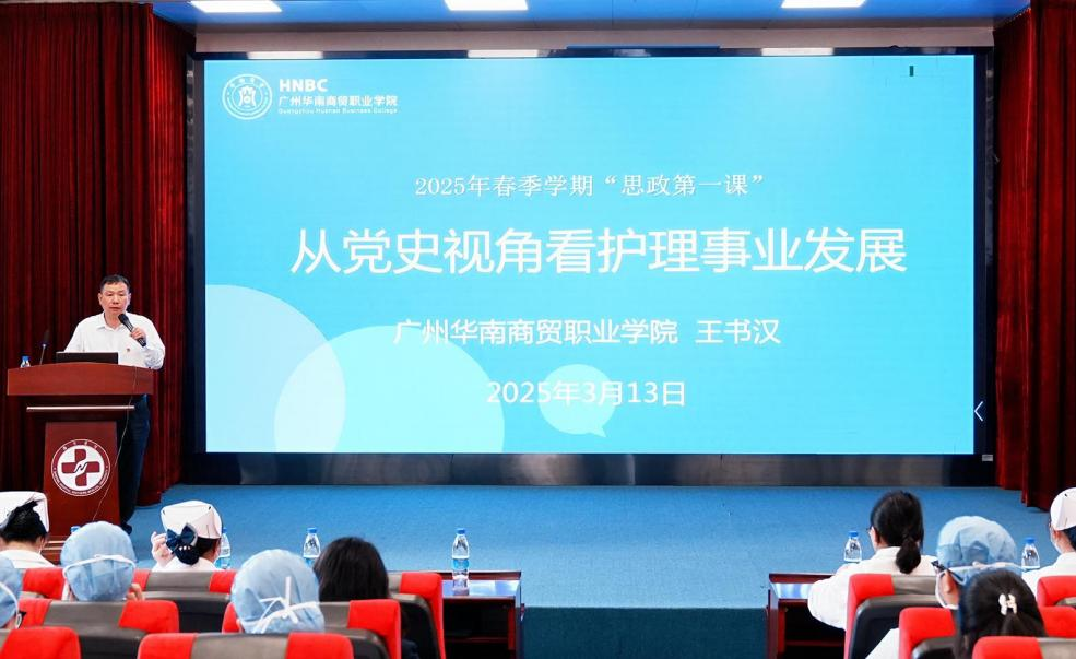 3月13日,广州华南商贸职业学院(以下简称“华南商贸”)校长曹文文、党委书记王书汉,分别走进广州市白云山医院和南方医院太和分院,为卫生健康学院护理专业实习学生代表讲授“思政第一课”,聚焦职业精神与实践能力,从党史视角探讨护理事业发展。