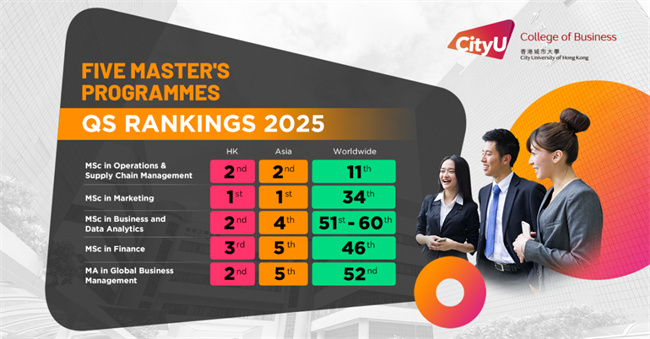 香港城市大学商学院全新推出香港首个商业AI理学硕士,更有其他15大优质硕士课程涵盖各大商业前沿领域。