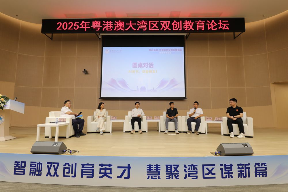 湾区青年创业者先锋论坛汇聚了5位来自医疗健康、数字科技、新能源及文化创意等领域的青年企业家,这些企业均成长于大湾区创新创业沃土。微远基因创始人许腾、有米云创始人李展铿、织锂新能源创始人胡希韬、Seek Within平台创始人曾晓露、优创译科技创始人陈冠华以“AI时代,创业何为”为主题展开圆桌对话。他们结合自身创业历程,深入探讨了粤港澳大湾区双创资源的融合路径,剖析人工智能对传统产业的颠覆性变革,并就AI时代的创业机遇与挑战展开深入讨论。现场观众踊跃提问,围绕技术突破、实践方法论等议题与嘉宾展开热烈互动,粤港澳三地青年学子充分进行了思维融合碰撞。