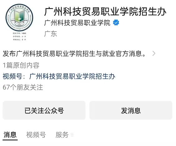 有关招生录取信息,请登录广州科技贸易职业学院招生信息网(学校网址:gzkmu.edu.cn ,招生网址:gzkmu.edu.cn/zsw)或关注“广州科技贸易职业学院招生办”微信公众号,或拨打招生咨询电话:020-84560708 、84560798、84567663