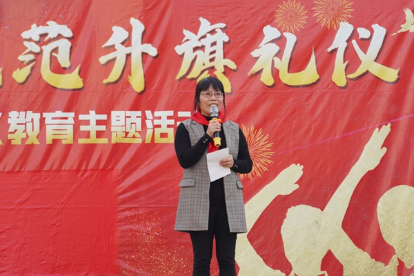 骆佩群校长宣讲《升旗仪式规范化承诺书》并发言