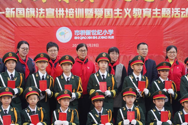 市桥新世纪小学国旗护卫队给我们展示了一次规范的升旗仪式,我们将全员行动起来,以国旗护卫队队员为学习的动力,学习正确、规范的升旗礼仪。