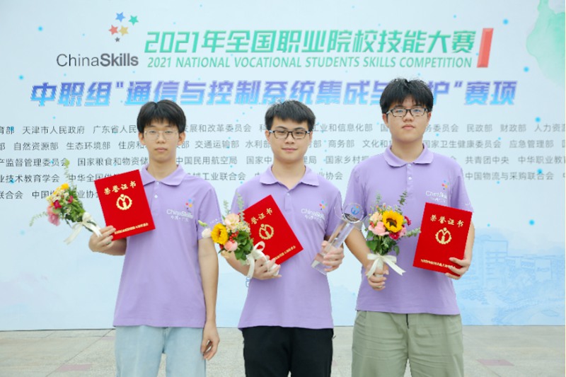 二年级时,三人因展现出吃苦、专注、有恒心、动手能力强等优秀特质被选拔进学校的竞赛集训队。技能竞赛是职业教育拔尖技能人才培养实力的集中体现,各校在竞赛上往往不惜投入丰厚资源。被选入竞赛集训队,既让三人走向了更宽广的平台,也意味着他们需要比其他同学在课外付出更多时间和精力。虽然去年第一次参加省赛只拿到了第九名,但他们随后吸取教训,总结经验,团结协作,加倍努力,经过一年的奋战努力,终于代表广东斩获全国第一,站上了最高领奖台。对此,他们虽然谦虚地表示“运气很好,很荣幸”,但成功的背后离不开个人的奋斗努力,也离不开政府、学校的大力支持和投入。