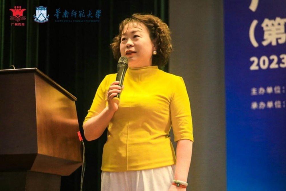 王红教授致欢迎辞并解读广州市新教师三年递进式培训实施方案。她表示,华南师范大学教师教育学科强、成果强、组织强,教师教育学部将利用国际化、多元化、高端前沿的优质培训资源为广州新教师专业成长赋能。她亲自担任项目首席专家,率领培训项目组充分调研新教师学员需求,秉持“富养新教师”理念,实施关怀型精准培训,以培养新教师的“三感五力”为总体目标,增强其职业使命感、团队归属感、工作效能感,不断提高新教师的职业认同与师德养成力、教学实践与教学反思力、班级管理与育德实践力、家校协同与融合育人力和职业规划与专业发展力,基于第一年度基本胜任工作、第二年度突破重点问题、第三年度能力全面提升的年度目标,设计研磨“三年五阶段”岗位浸润式培训模式,划分课程模块、实施多元培训方式,通过新教师成果输出倒逼学习输入和深度建构,以“主题引领的双微机制(微任务、微团队)”强化学习效果,破解教育现实问题,切实帮助新教师胜任教育教学工作,奠定新教师可持续发展的基础,培养一支强力支撑广州市教育高质量发展、思想过关、专业过硬、潜力过人的新教师队伍,以科学精准的培训助力新教师在三至五年内成长为骨干教师。“独行速,共行远”,她表示,希望未来的三年里成为新教师们专业发展的陪伴者,结伴同行,共赴教育的诗和远方。