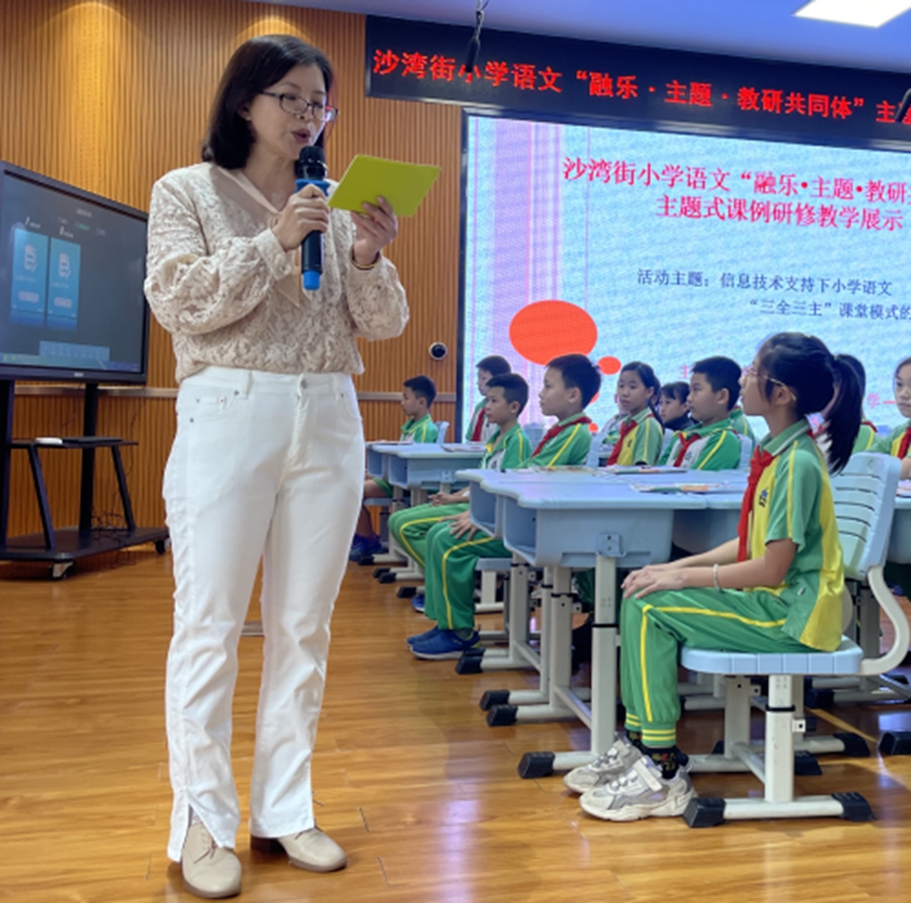 2023年4月14日下午,由沙湾教育指导中心的主办,沙湾龙岐螺阳小学与荟贤小学承办,开展了沙湾片区小学语文“融乐·主题·教研共同体”研训教学展示活动。本次活动以“信息技术支持下小学语文‘三全三主’课堂模式的探索”为主题,深化两校语文教研团队去年的主题研训活动,通过“集体备课+课例展示”模式,加强校际的教研互动,强化研训带动,促进教师专业自我发展。