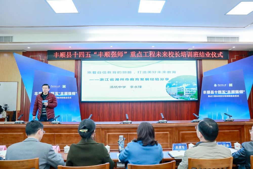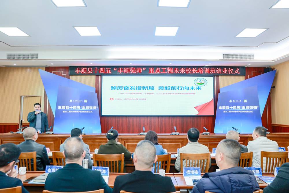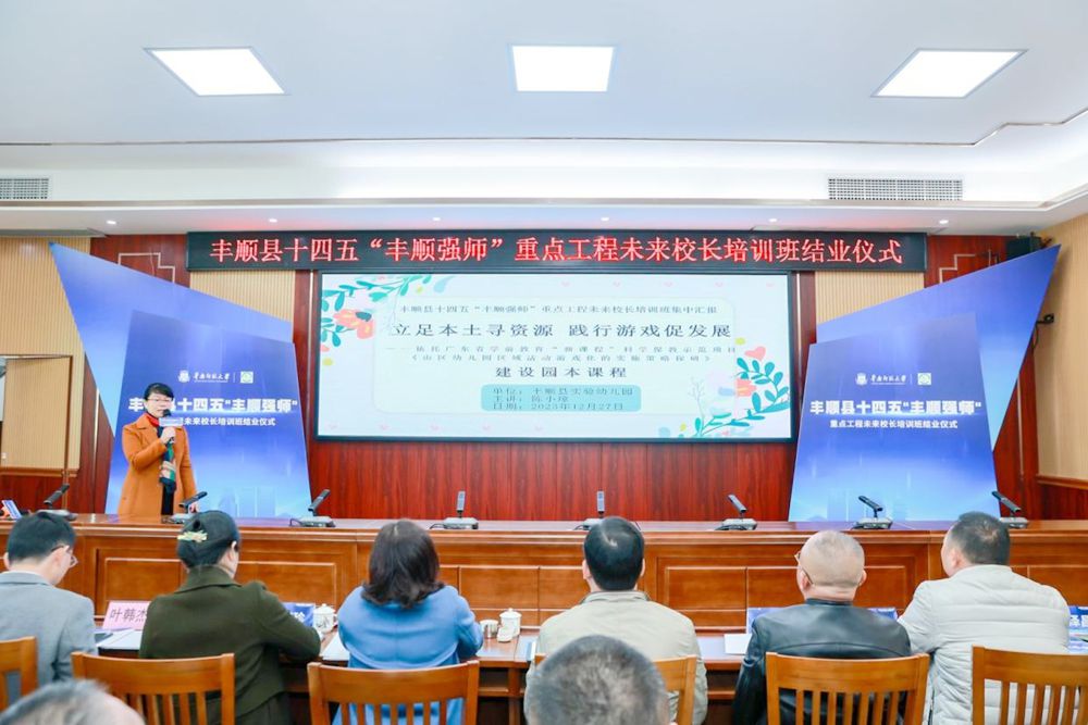为深入学习贯彻习近平总书记关于大力弘扬教育家精神,加快建设高素质教师队伍、建设高质量教育体系、建设教育强国,落实立德树人根本任务,强化教育对民族复兴宏伟目标的支撑作用。12月27日上午,华南师范大学成功举办了丰顺县十四五“丰顺强师”重点工程未来校长培训班集中汇报暨结业仪式,标志着一场为期数月的培训即将画上圆满的句号,同时也预示着丰顺县教育迈向更高水平的新篇章,为县域基础教育掀起一场教育改革新风潮。