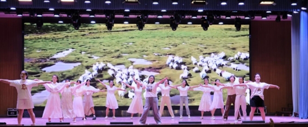 汇报表演中的重磅作品是项目工作团队专门为学前儿童普通话教育专项计划师资培训项目创编的歌曲《一条路》,歌曲在汇报表演晚会上首次演绎,当优美的歌声回荡在这条古代丝绸之路的上空时,歌曲的每一个字词、每一个音符都像是在呼唤着中华儿女为同一个梦想,奔赴一条语言互通、继承传统、数字赋能、自信自立的腾飞之路!