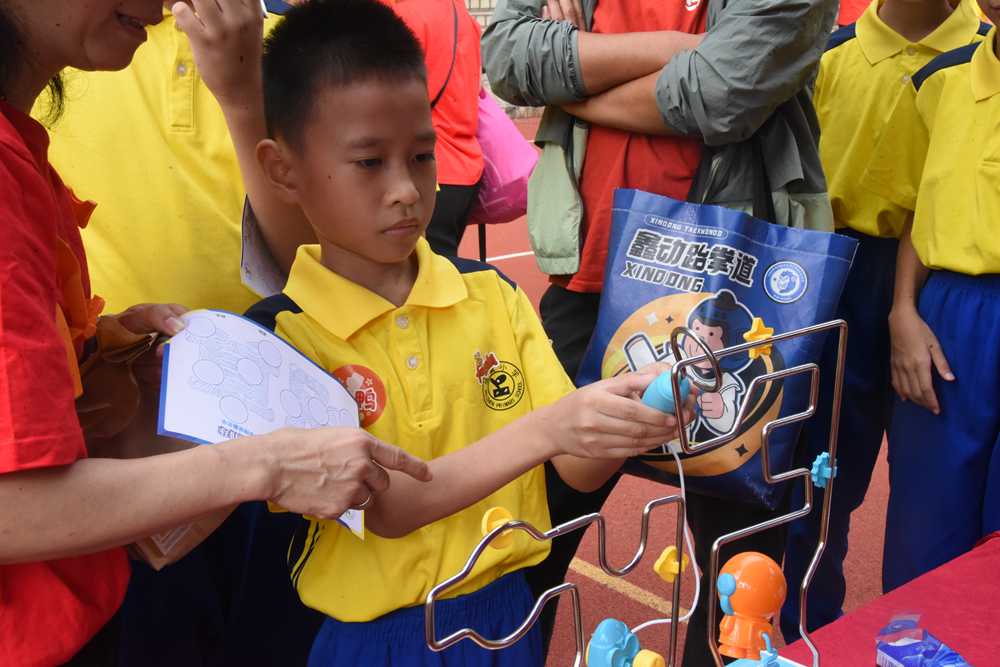 随着排球表演赛的结束,嘉年华排球主题游园活动欢乐开场。在体育老师组织下,同学们有序回到大本营,和家长一起开启游园之旅。