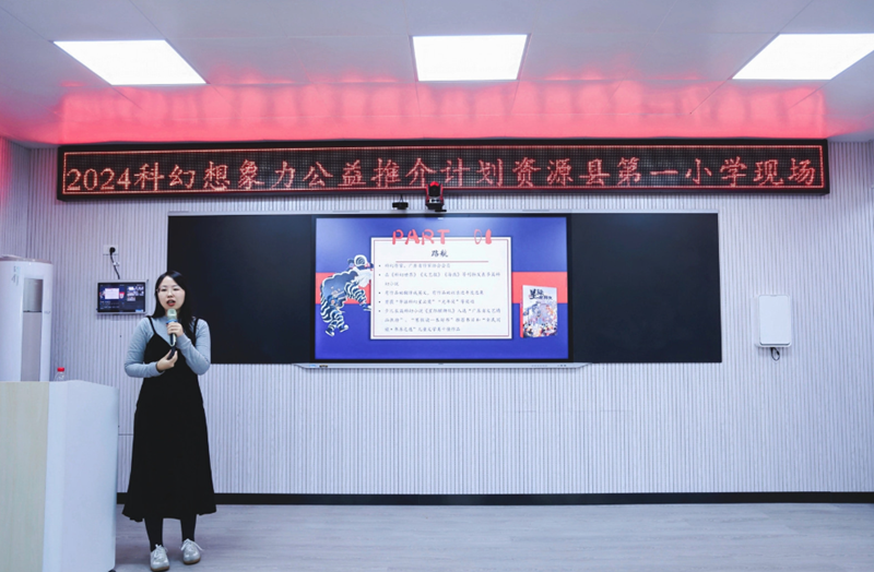 科幻基金理事长马国宾在致辞中表示,科幻是科技的前导,基金一直致力于推动科幻文化的推广,希望能在有着260年悠久历史的资源县第一小学将“科幻想象力”的种子播撒下去,未来能够启发到同学们的想象力和创造力。