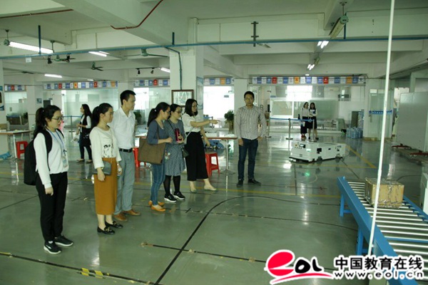 在参观学习的过程中,老师们就企业对大学生的知识技能要求、大学生就业后的事业发展规划以及双方在技术应用型人才培养方面可能开展的合作等问题进行了座谈交流;在随后的参观过程中,广州普华灵动机器人技术有限公司总经理钟工向老师们详细介绍了当前行业技术发展的趋势,并演示了智能机器人设备操作,让在场的老师们大开眼界,纷纷主动向专家咨询相关技术操作问题。