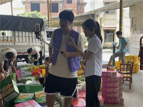 除了线上直播带货外,实践队还组织了线下摆摊销售活动。在村内及周边地区设立摊位,直接向过往的顾客销售新鲜的水果和农产品,此举当天帮助当地村民销售了滞销的农副产品,实现有效增收1400余元。