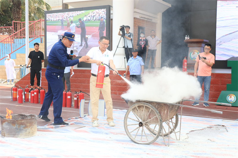 城西消防救援站杨波副站长进行消防安全培训,他讲解了火灾基本常识、灭火基本常识等知识,并为大家示范正确使用灭火器的步骤——提、拔、握、压。在实操环节中,师生代表在杨站长的指导下,正确使用干粉灭火器对火源进行扑灭,让抽象的消防安全知识变成了具体的实践操作,将理论强化于心,将技能熟练于行。
