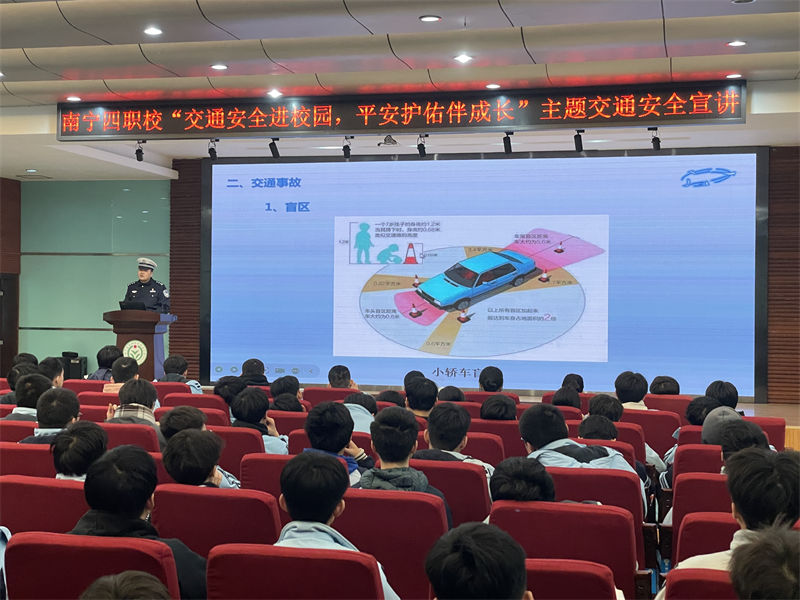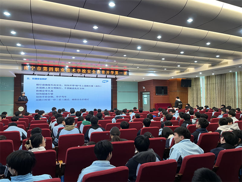 新学期已拉开帷幕,学生的安全是“头等大事”。为进一步增强学校师生的交通安全意识和自我防护能力,预防校园内外交通事故的发生。2月25日下午,南宁市第四职业技术学校联合交警七大队共同举办了一场以“交通安全进校园,平安护佑伴成长”为主题的“开学第一课”。
