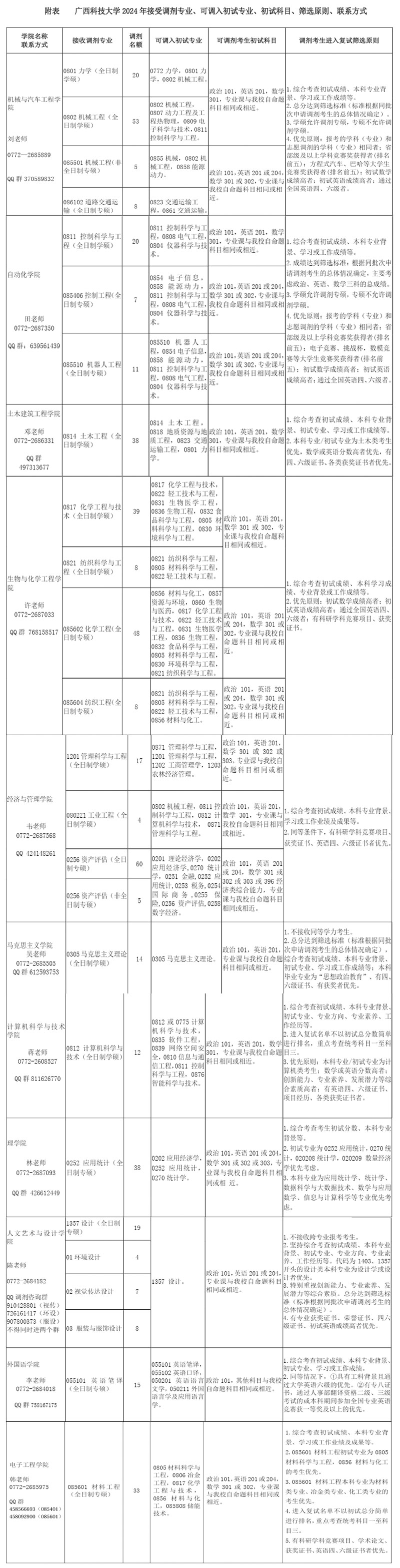 广西科技大学2024年硕士研究生调剂信息公告