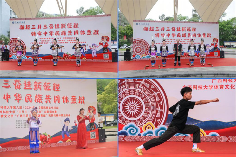 本次校园民族文化活动是广西科技大学“广西三月三”民族团结进步宣传月活动的主要内容之一。大家穿上节日盛装,唱起山歌,抛起绣球,品尝着五色糯米饭、青团、油茶等特色美食,以丰富多彩的民俗文化活动欢庆节日,构筑中华民族共有精神家园,进一步引领广大师生铸牢中华民族共同体意识,助力建设铸牢中华民族共同体意识示范区。党委统战部、学生工作部(处)、团委、后勤处,以及各学院(部)1000多名师生参加了活动。